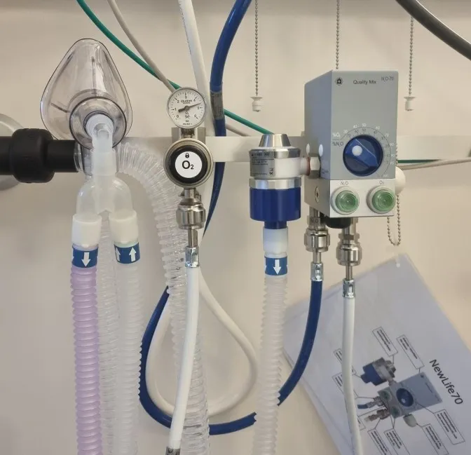 - Demandventil som kun gir lystgass når pasienten puster inn