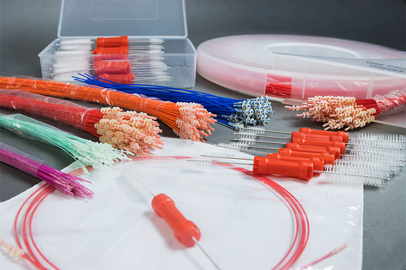 PULL THRU™ Cleaning BrushMed et patentert system for rengjøring av endoskoper tilbyr Pull Thru® og Stubby brush® en effektiv løsning. Pull Thru® brukes for rensing av kanalene og finnes i flere størrelser, mens Stubby brush® har børster på begge sider for å rengjøre knapper og ventiler. Pull Thru® trenger bare å dras gjennom kanalen én gang, og systemet er konstruert for å effektivisere manuelle rengjøringer av endoskoper, noe som reduserer behovet for gjentatt bruk av tradisjonelle børster.